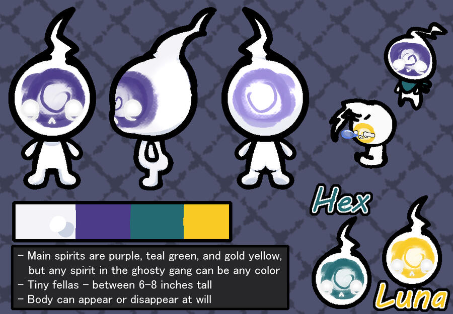 Mascot characters for my streams/chat ! I call my followers the ghosty gang ^^These are spirits that hang around AstralGhosty and her shop